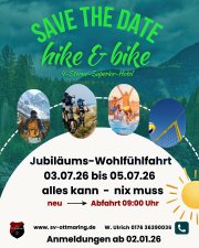 Bereits seit fünf Jahren zieht es den SV Ottmaring zu seiner jährlichen Wander- Bike- Fahrt in die Berge. 2026 startet der SV Ottmaring nun zu einer Jubiläums- Wohlfühlfahrt nach Saalbach Hinterglemm. Hier wird es an nichts fehlen. Egal ob Wandern, Biken oder einfach nur am beheizten Bergsee oder der Wellnesstempel die Seele baumeln lassen. Für jeden ist was dabei!