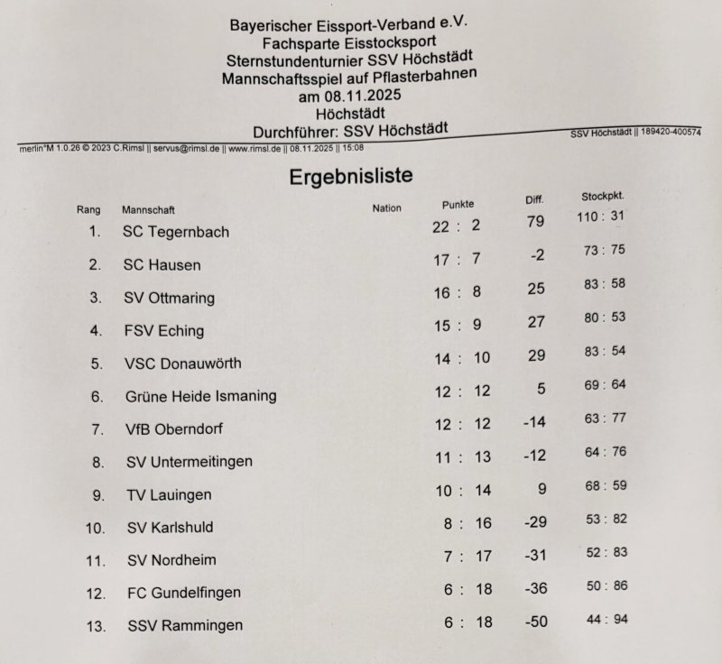 Am Samstag, den 8. November 2025, nahm der SV Ottmaring am erstmals ausgetragenen „Sternstunden“-Stockschützen-Turnier in Höchstädt teil. Insgesamt 13 Mannschaften gingen bei diesem hervorragend organisierten Benefizturnier an den Start.